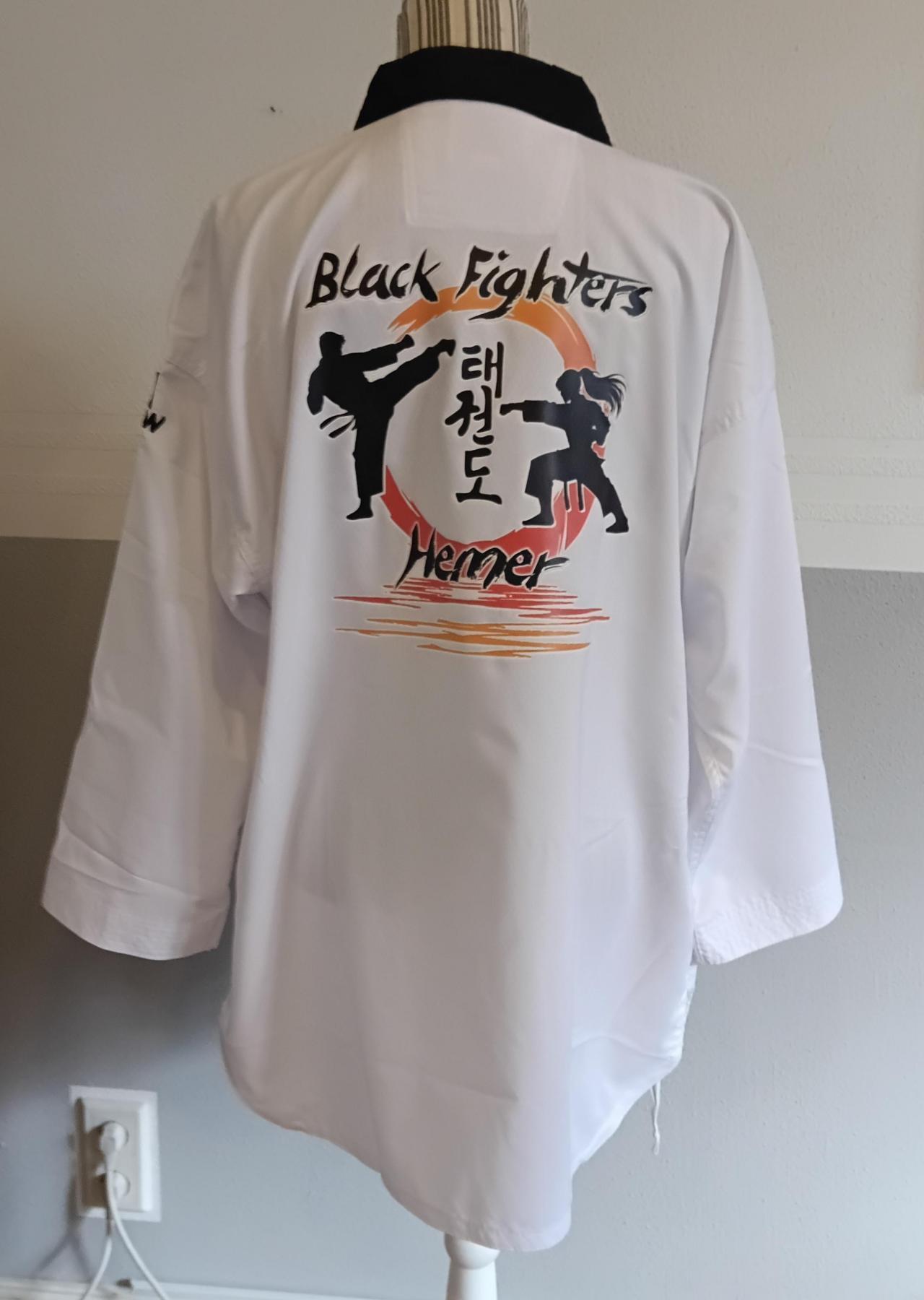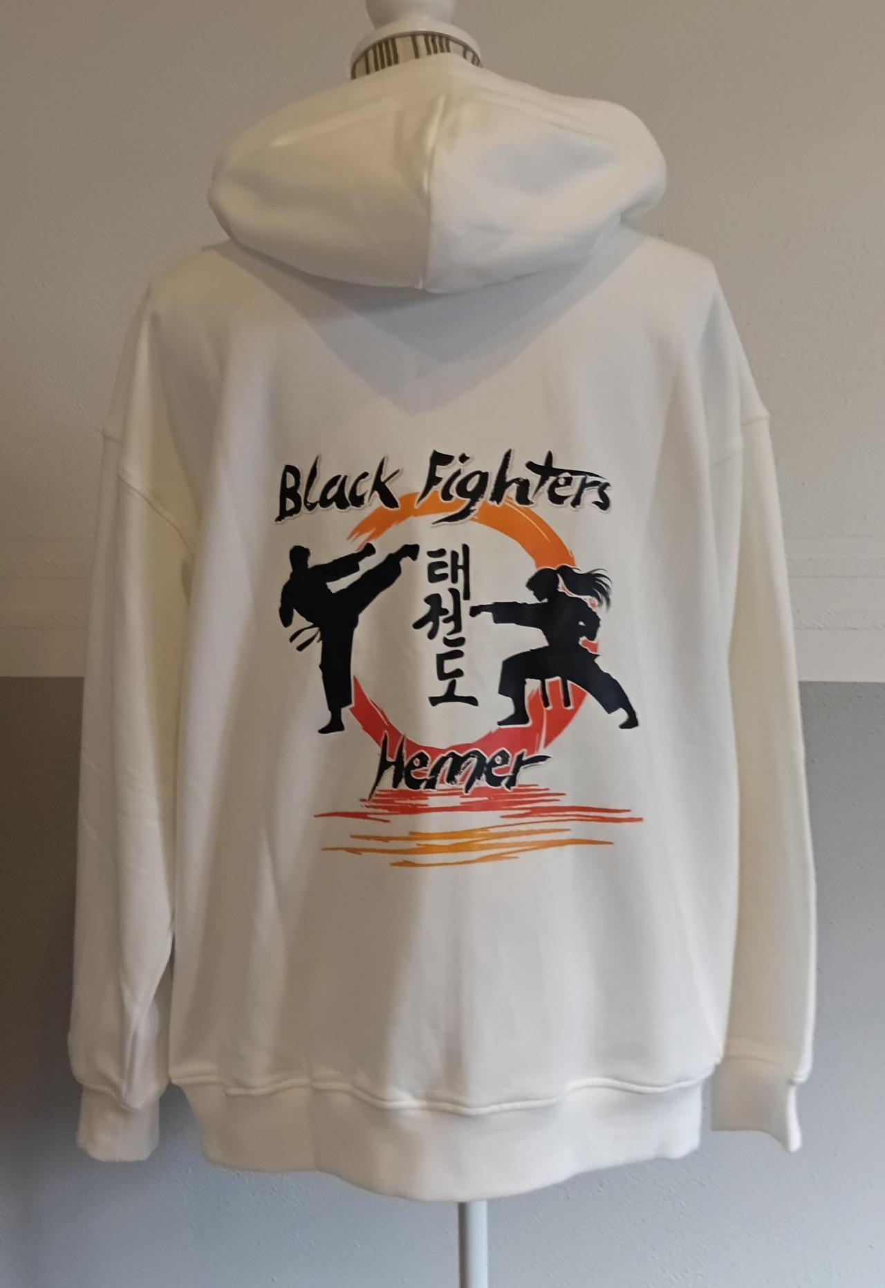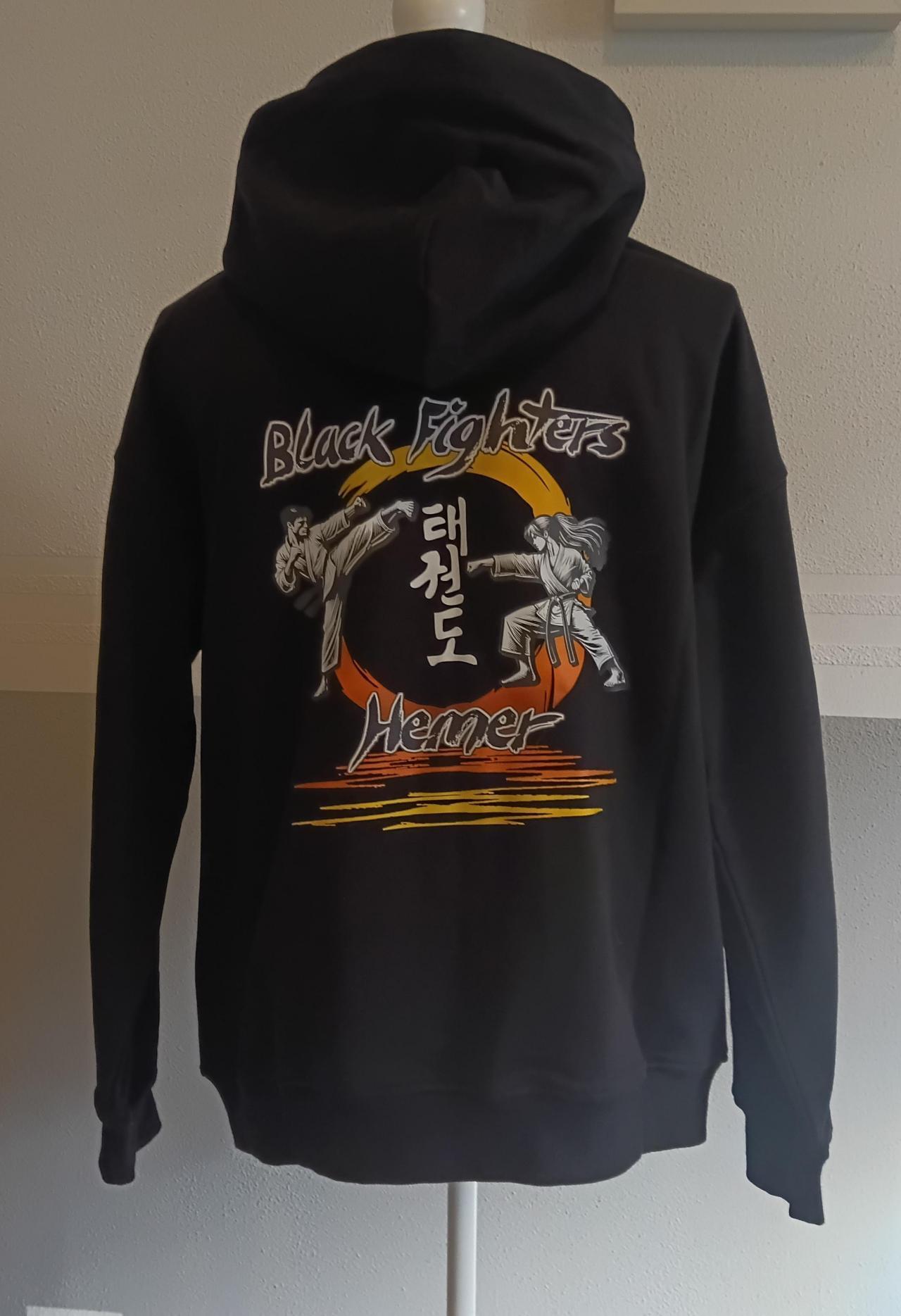 Um auch nach außen bei Turnieren als Team aufzutreten haben wir uns als Team-Kleidung für die schwarzen Hoodies entschieden. Wahlweise könnte dann noch der Dobok entsprechend bedruckt werden.
